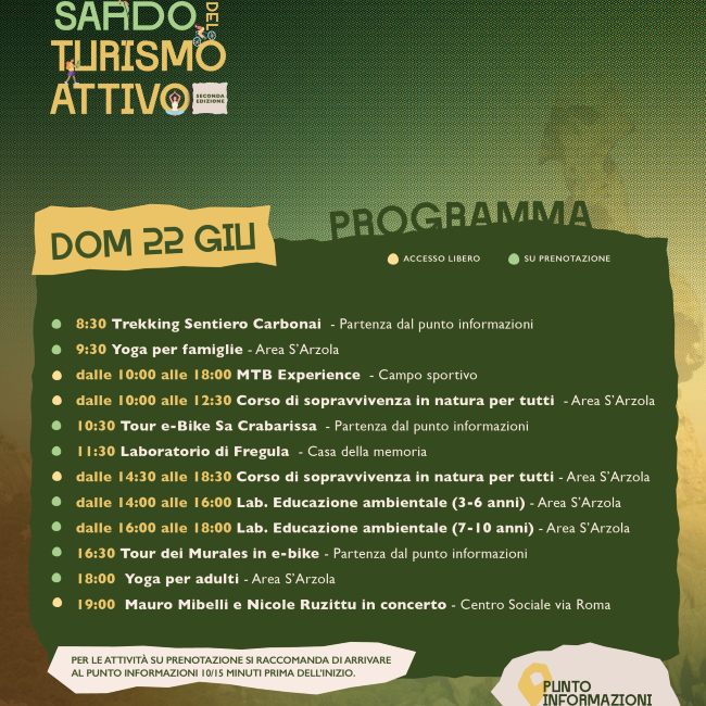 “Abbiamo voluto riproporre il Festival Sardo del Turismo Attivo per dare un’idea di turismo diversa” sottolinea il sindaco Benedetto Pitzeri e continua “ Vogliamo far scoprire il nostro territorio e il nostro paese in maniera diversa, in movimento offrendo un ampio spettro di attività adatte a grandi e piccoli, inclusi musica e divertimento serale”.