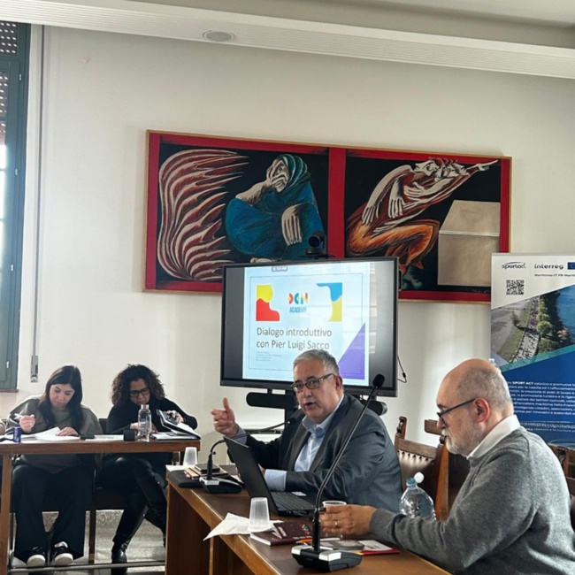 All’incontro hanno preso parte Francesco Timpano, responsabile scientifico della DCN Academy e docente dell’Università Cattolica del Sacro Cuore, e Pierluigi Sacco, professore ordinario dell’Università degli Studi “G. d’Annunzio” di Chieti-Pescara, tra i più autorevoli esperti italiani di economia della cultura e distretti culturali.